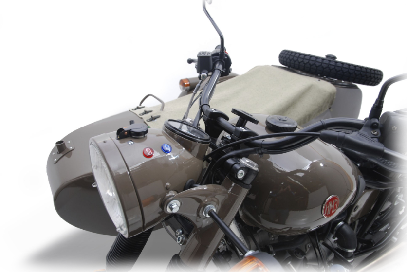 Doppelschleifen Stahl-Rohrrahmen Teleskopgabel Gezogene Doppelschwinge mit hydraulischen Stossdämpfern, 5-fach einstellbar Gezogene Schwinge mit hydraulischen Stossdämpfer, 5-fach einstellbar 3 Kreuzspeichenräder und Reserverad 2.15 x 18 Zoll Strassenbereifung 4,00 x 18 Zoll Vorne: Hydraulische Scheibenbremse Hinten und Beiwagen: mech. Trommelbremse 350 kg 610 kg 2,280/1,630/1,045 mm 750 mm 19 l, 95 Oktan Super-Benzin 7.5 l/100 km Oliv