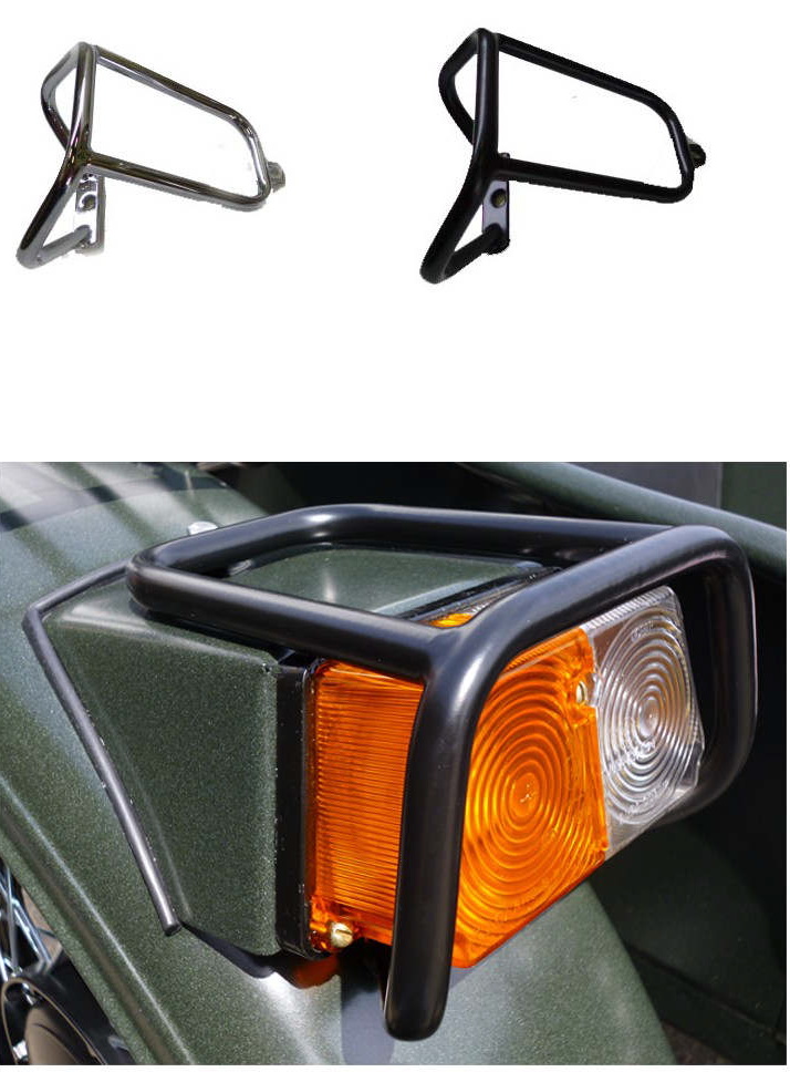 Der Schutzkorb für die Beiwagenleuchten ist in schwarz und verchromt erhältlich